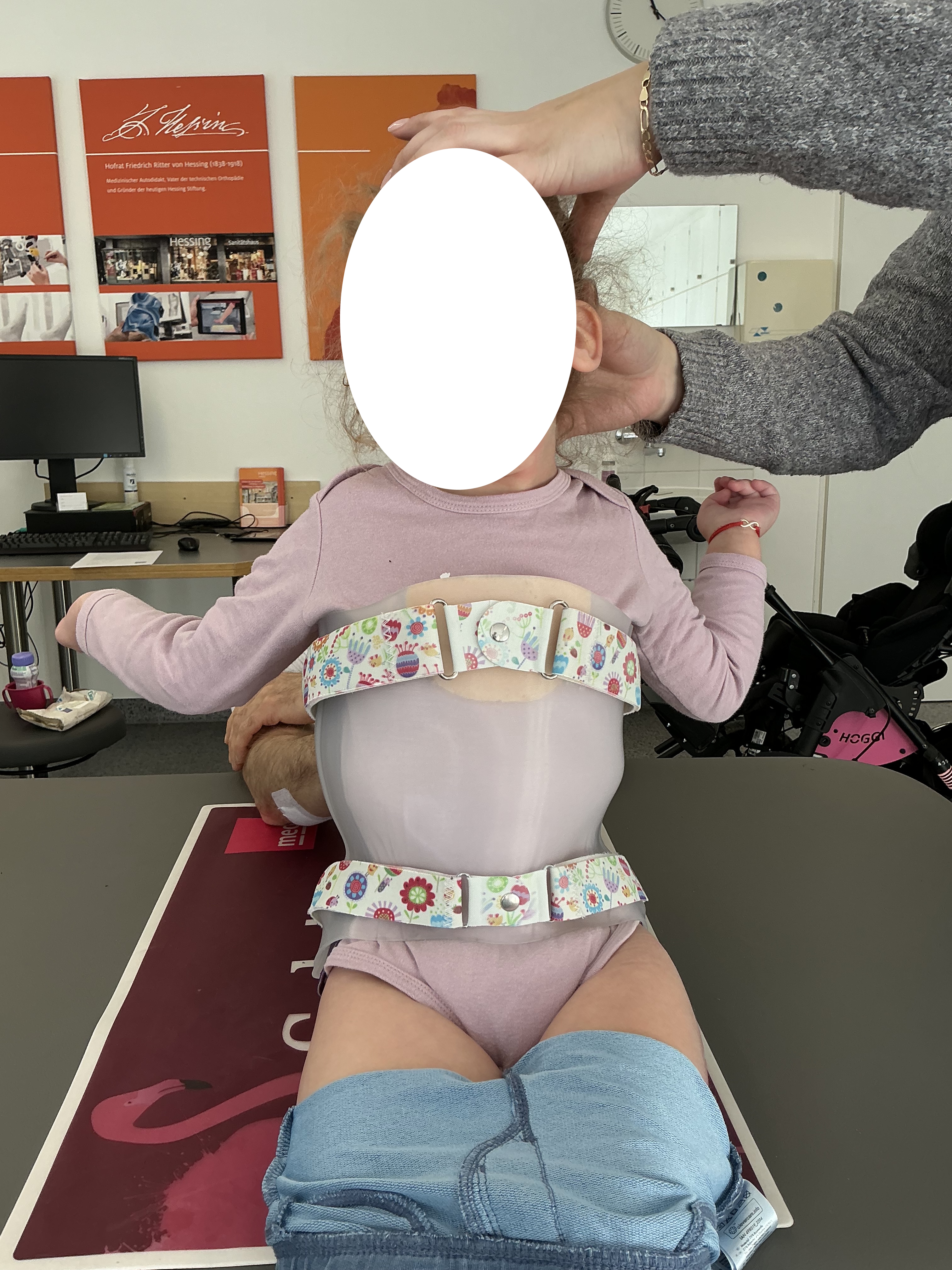 Im Rahmen dieser Versorgung wurde ein zweischaliges Korsett patientenspezifisch geplant, digital modelliert und im Highspeed-3D-Druck gefertigt. Die Planung und Modellierung erfolgte durch Herrn Heller bei der Hessing Stiftung; die Fertigung des Korsetts wurde bei FR Additive umgesetzt.